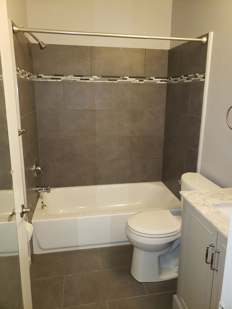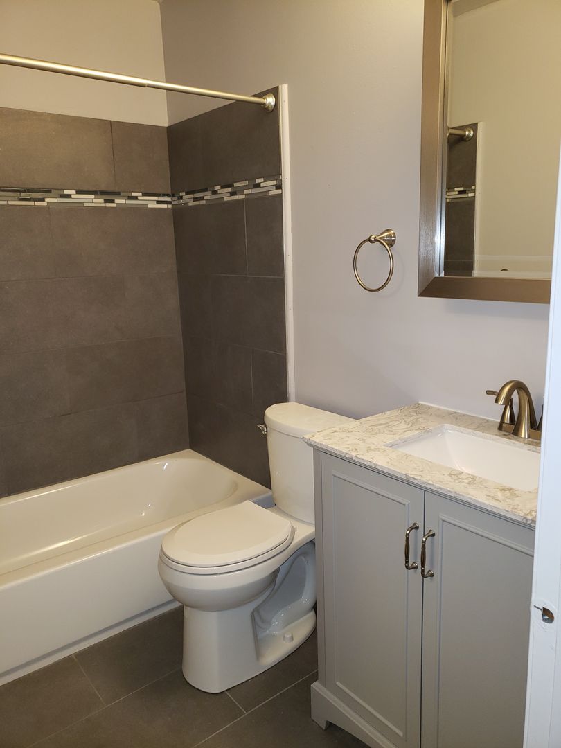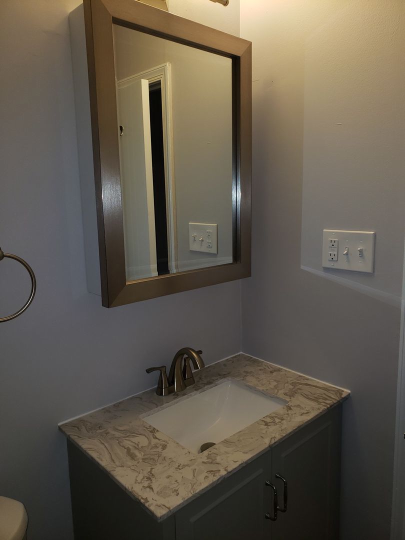 Brand new bathroom with all new tile, vanity and medicine cabinet.