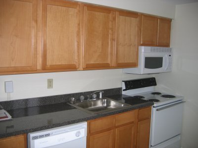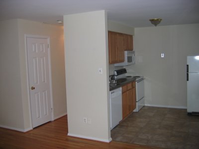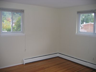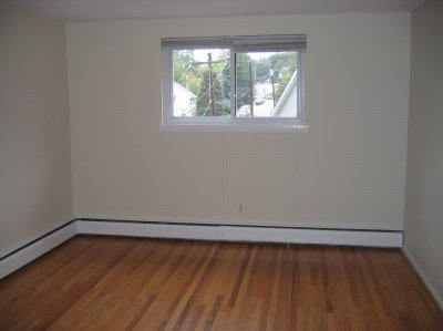 The apartment has a large living room adjacent to the eat in kitchen. Beautiful hardwood floors.